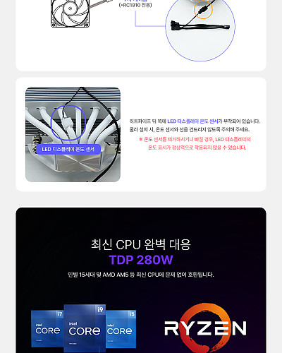 시스템 쿨러 / 팬 쿨러 / A/S기간: 3년 / 정방향 / 팬 크기: 120mm / 팬 개수: 1개 / 25T / 3-4핀 / 베어링: Hydraulic(유체) / 2000 RPM / 최대 풍량: 53.55 CFM / 풍압(정압): 1.86mmH₂O / 최대 팬소음: 25.6dBA / 작동전압: 팬 12V, LED 5V / LED 라이트 / PWM 지원 / 데이지체인 / RGB / LED시스템: AURA SYNC, MYSTIC LIGHT, RGB FUSION, POLYCHROME