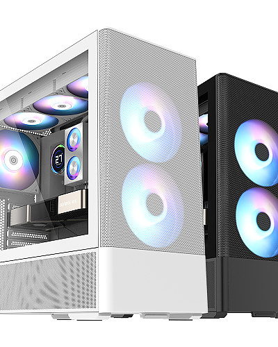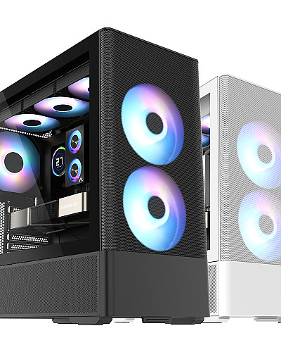 PC케이스(ATX) / 미들타워 / 파워미포함 / 표준-ATX / Micro-ATX / 표준-ITX / 쿨링팬: 총4개 / LED팬: 4개 / 측면: 강화유리 / 후면: 120mm LED x1 / 전면: 120mm LED x3 / 너비(W): 205mm / 깊이(D): 470mm / 높이(H): 485mm / 파워 장착: 200mm / 파워 위치: 하단후면 / GPU 장착: 270~400mm / CPU쿨러 장착: 160mm / LED 색상: RGB / 그래픽카드 지지대 제공